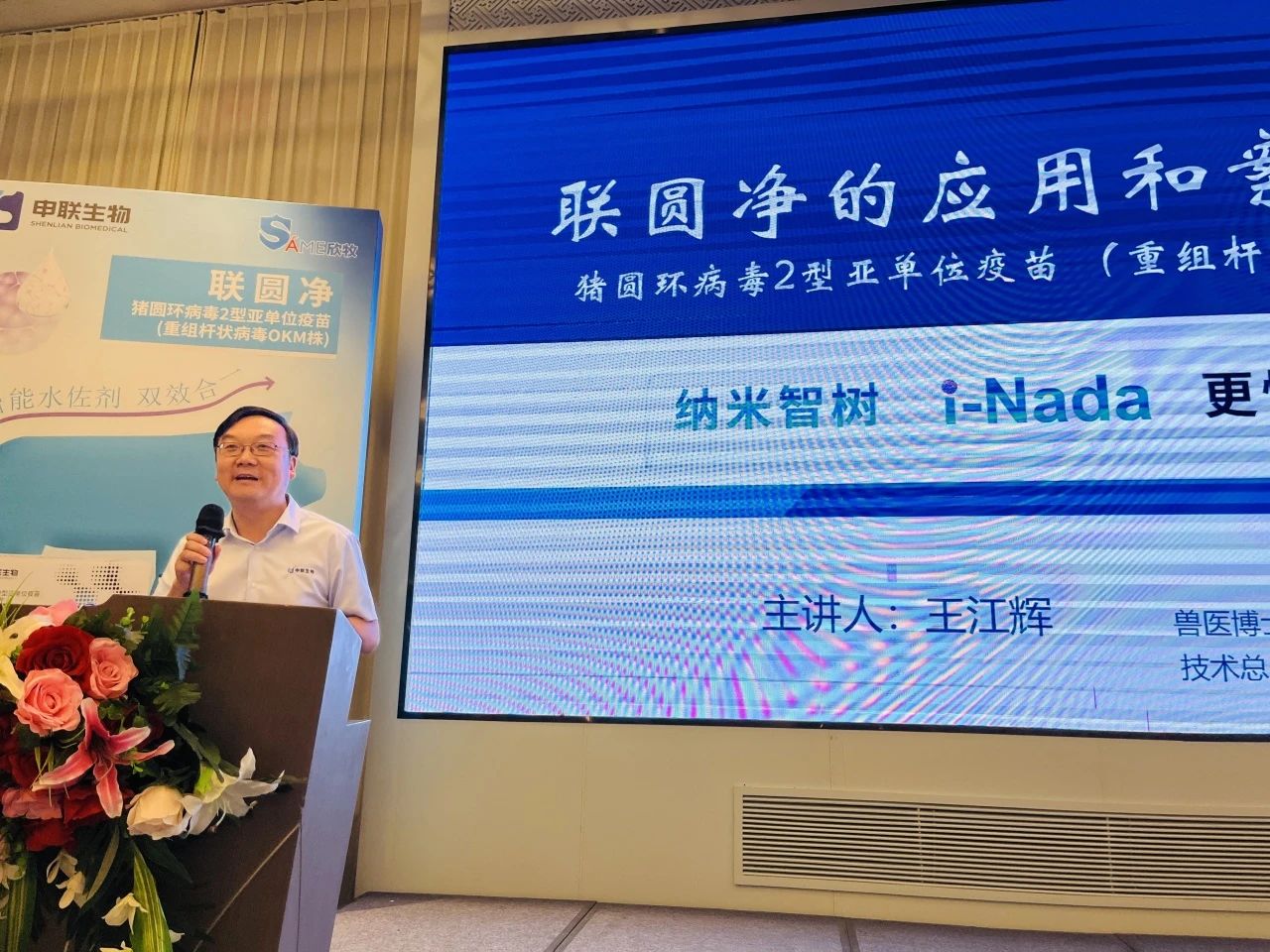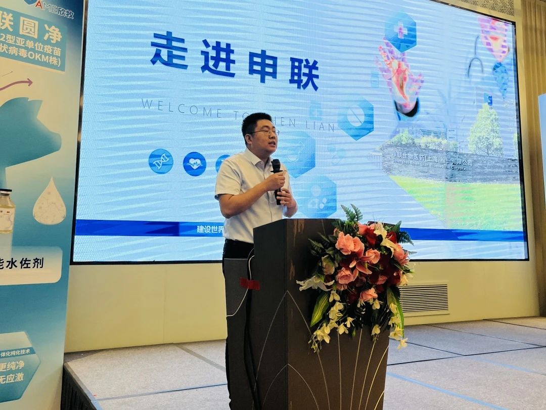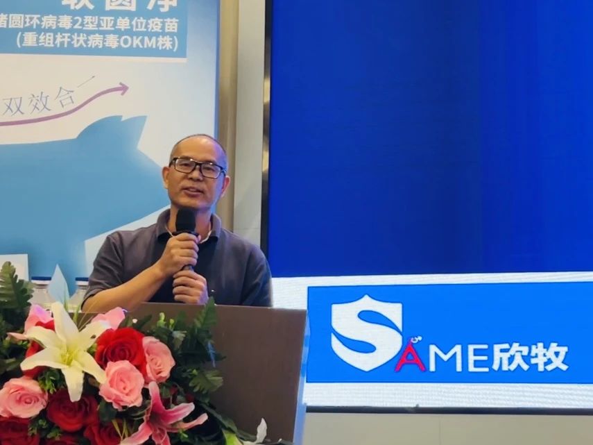 技术服务总监王江辉作了《联圆净的应用和案例分析》的报告,围绕圆环疫苗交叉保护力、免疫程序、免疫效果评估等问题展开介绍,并对“联圆净”产品在猪场使用的一些临床数据给大家做了分享和交流。