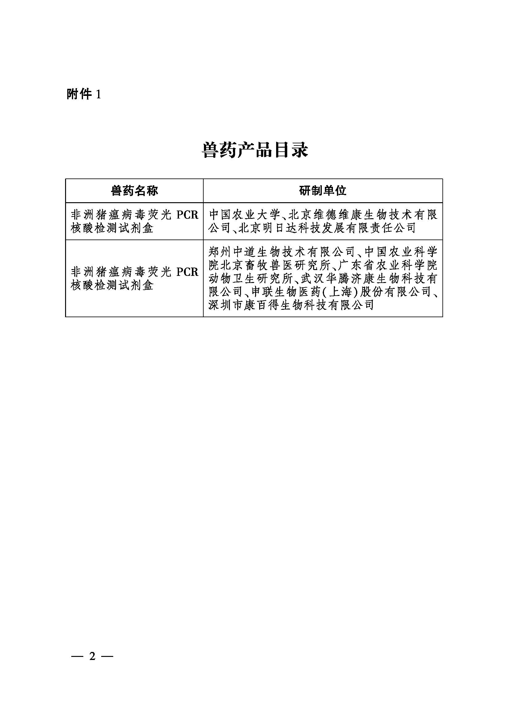 根据农业农村部 2020 年 1 月 10 日发布的第 254 号公告,公司与其他单位联合研制的“非洲猪瘟病毒荧光 PCR 核酸检测试剂盒”兽药产品获得农业农村部批准。