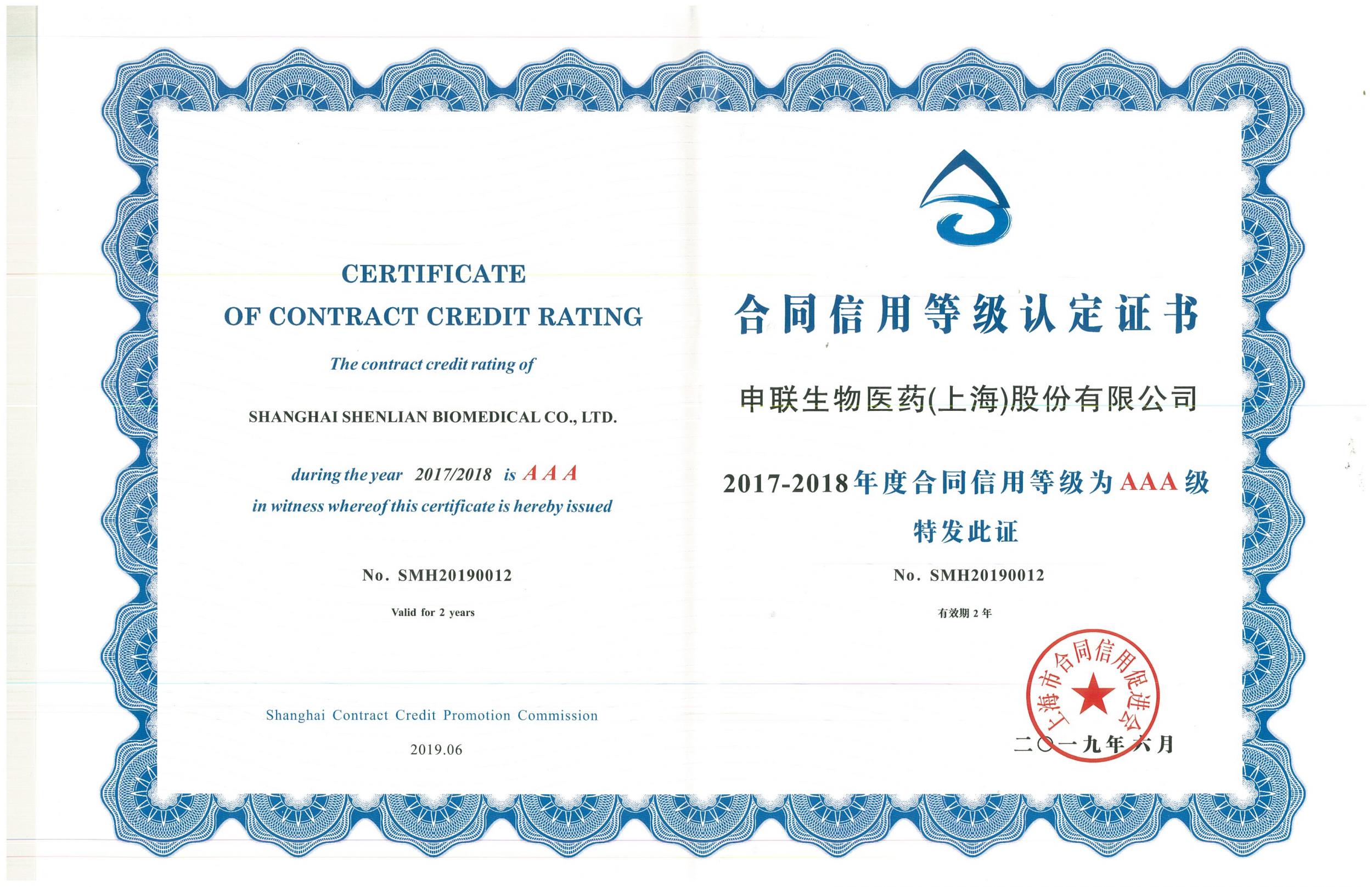 近日,经上海市合同信用促进会的综合考证及专家评审委员会审核,凯发k8一触即发生物被评为“2017-2018年度重合同守信用企业”、“2017-2018年度合同信用等级AAA级等级认定”,并颁发奖牌及证书。这是公司开拓市场、强化管理、规范运作获得有关主管部门的制度化认可的重要标志。